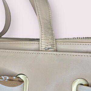 NWT purse in clean condition! Note where a bit of the leather has dried on one of the straps though and cracked and there is a small white scuff on the front. Otherwise, is a bag with a lot of life left in it!