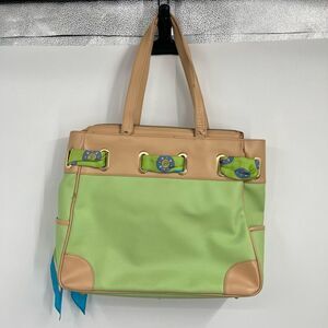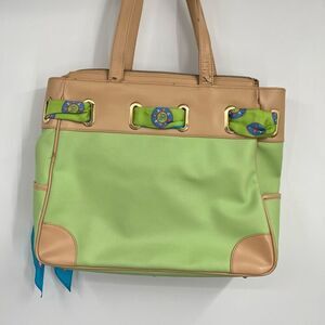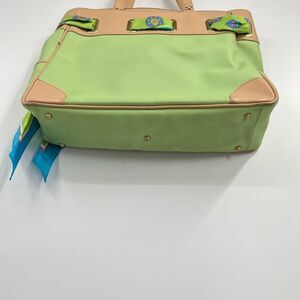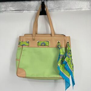 Parazul Tote Purse Bag Leather Tan Lime Green Scarf Wrapped Zipper Top Womens