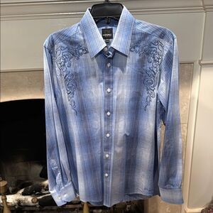 Parc 81 Light Blue Casual Button Down Shirt with Embellishments size medium