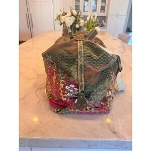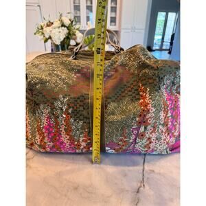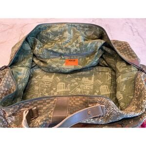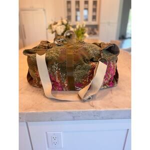 Parcel London Gardencore Large Canvas Duffel Travel Bag Colorful Print Adjustable & removable Strap. The colors on the bag are softer than they appear in the photos. Sturdy canvas duffle bag measuring approx. 21' W, 10' D, 12' H. Shoulder strap extends to approx. 3' feet. In good condition. Shoulder strap needs cleaning.