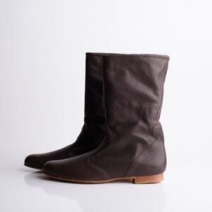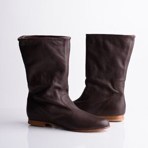Womens Brown Leather Flat Boots 10" shaft