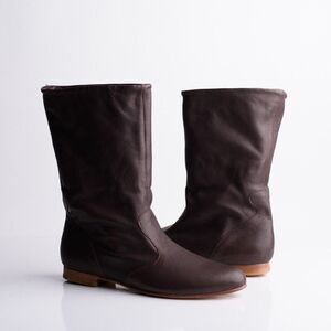 Pare Gabia Isidores Womens Brown Leather Flat Boots Booties Sz 8 EU 39 New