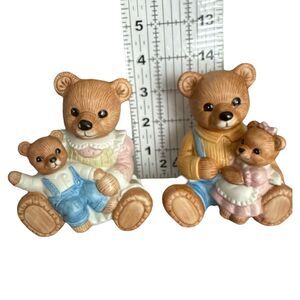 Parent & Child Teddy Bear Figurines Set of 2 Ceramic 1444 Vintage Pastel Bears