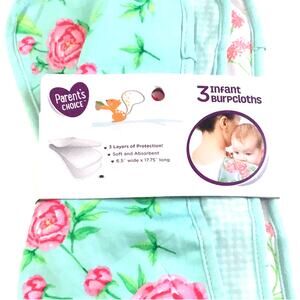 Parent's Choice 3/Pack Infant Burpcloths Florals Check NWT