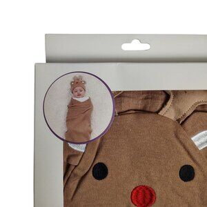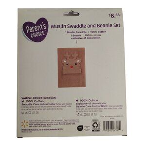 Parents Choice Muslin Swaddle and Beanie Cotton Reindeer Newborn Set
