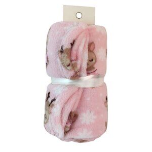 Parents Choice Pink Deer Reindeer Plush Baby Blanket 30"x36"