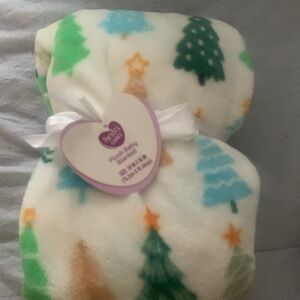 Parent's Choice Plush Baby Blanket - White with Green and Orange Trees