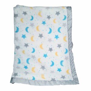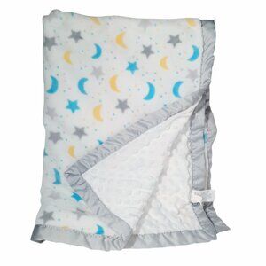 Parents Choice Star Moon Minky Dots Satin Trim Lovey Security Blanket 40" X 30"