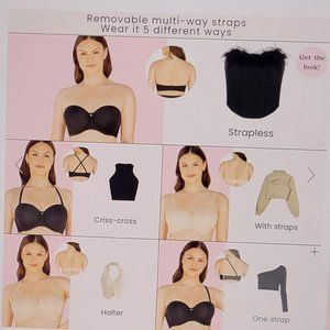 Sleek, seamless styling to make this the ultimate strapless perfect for any occasion. Detachable, convertible daisy embossed straps, make it versatile enough to style it five different ways. Very soft - no lines. Adjustable hook closure.