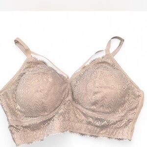 Elegant Parfait lace bra in a soft beige color. Features delicate lace detailing. Has not been used