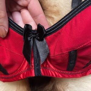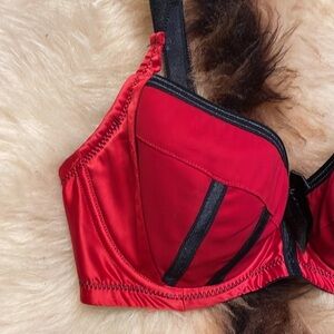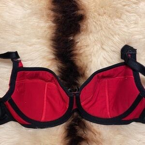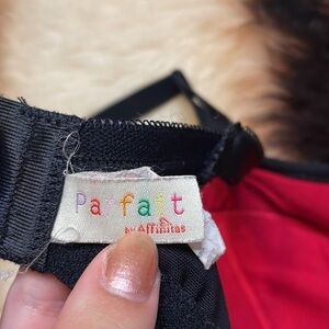 parfait by affinitas red and black bra size 30DDD No rips Adjustable hook eye closure Padded, and has underwire