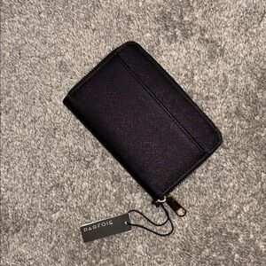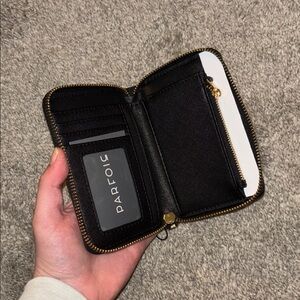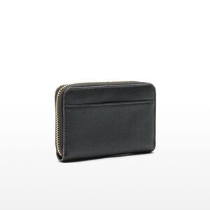 Includes one back exterior pocket in addition to one interior clear ID card pocket, two interior credit/debit card slots, 2 interior vertical pockets, one late main compartment for bills/receipts, and a zippered coin compartment.