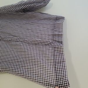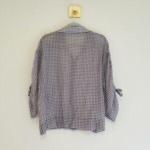 Parfois Collection Gingham Blouse Women Medium Button Up Semi-Sheer Navy Blue
