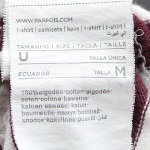 Parfois White Burgundy Womens Striped 3/4 Sleeve Cotton T-Shirt Top Size Medium