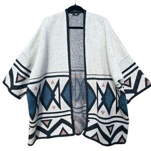 Parfois Women's European Knit Ethnic Pattern Poncho Cardigan One Size Fits All