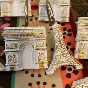 Paris Bathroom Shower Curtain and Matching Hooks and Accessories Set