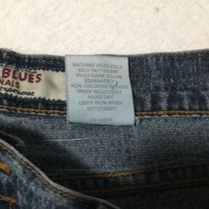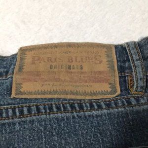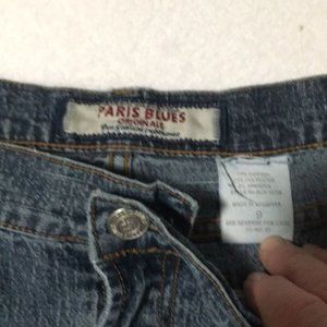 Paris Blues Authentic American Brand woman’s zip and button front blue jeans size 9. Has two front pockets and watch pocket. Has two back pockets. Hem a little frayed, but other than that good pre-owned condition.