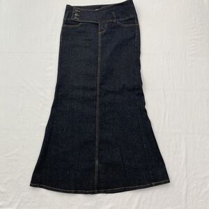 Paris Blues Denim Maxi Skirt Womens Size 3 Button Front Dark Wash Flared 90s Y2K