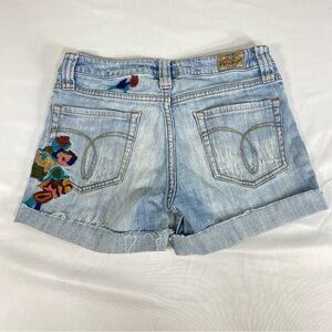 Paris Blues Embroidered Floral Design Homemade Cut-Off Shorts