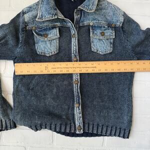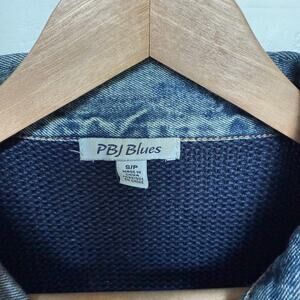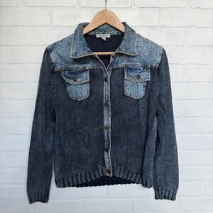 Paris Blues Women's 100% Cotton Blue Jean Sweater Snap Jacket Pockets sz S