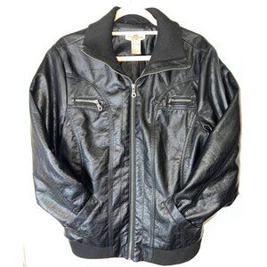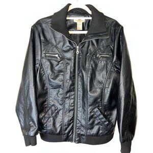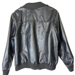 Paris Blues Womens Black Faux Leather Bomber Jacket 1X With Zipper Front & Ribbe