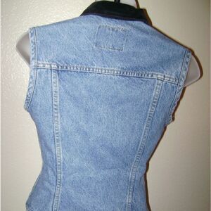 Details: Paris Blues denim vest front zip with black velvet collar.