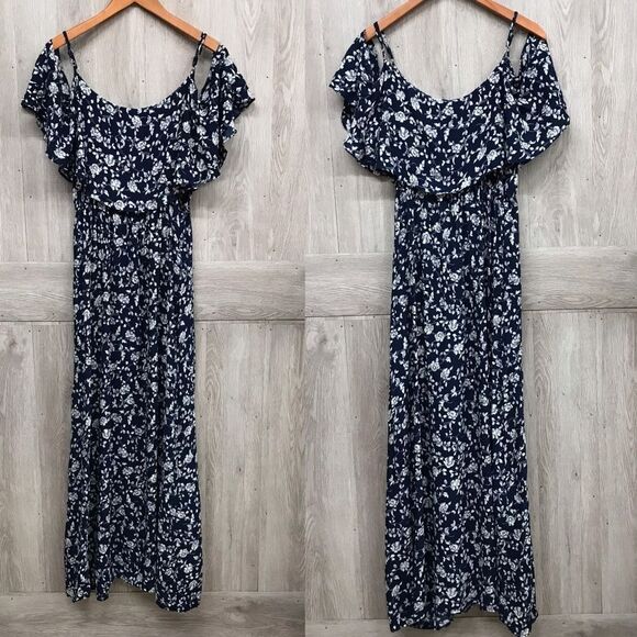 Paris Collection Navy Blue Floral Off Shoulder Maxi Dress BB133