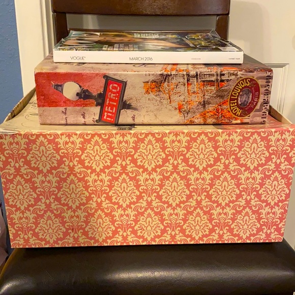 Large Paris Box (too has slight misalignment with bottom), Medium hard shelled paris box that has book effect and copy of the Vogue March 2016 issue magazine, gently worn