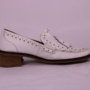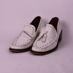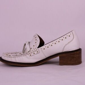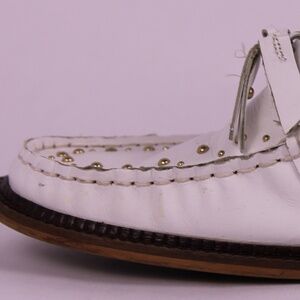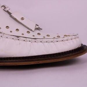 Paris Designer White Studded Tassel Loafers | EU 41 | Luxe Vintage Flair