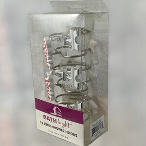 Purchase includes 12 Resin Hooks that have silver tone hardware. Compatible with standard Rids and Shower Curtains. Easy Care - Just Wipe Clean.