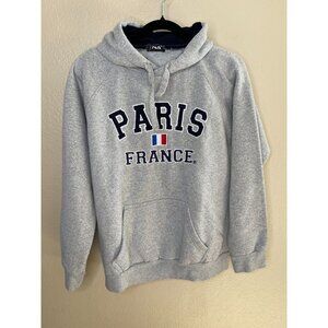 Paris France Gray Hooded Sweatshirt L Front Graphic Pullover Soft Cotton Blend