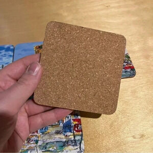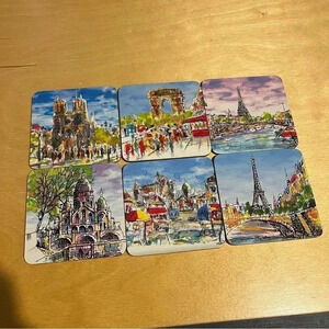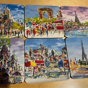 Paris France Scenic Scenes Coasters Illustrated Colorful Eiffel Tower Set Of 6