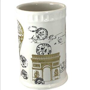 Paris French Parisian 2 Piece Bathroom Accessory Decor from the “Carte Postale” Collection. Classic French White Ceramic. French Country style with Gold French Symbol overlays.