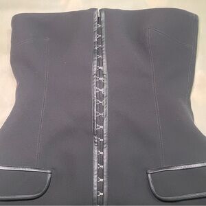 Tags: paris georgia dress, paris georgia mini dress, strapless black dress, faux leather trim, sustainable dress, eco friendly dress, hook and eye dress, party, night out, event, date night, minimal, edgy, designer, sophisticated, chic, clean girl aesthetic, black mini dress, lbd