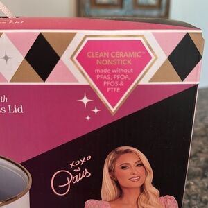 Paris Hilton 2 quart sauce pan with glass lid white and gold NEW