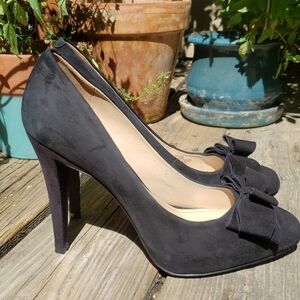 This feminine style boasts a black suede upper and chic bow embellishment at the vamp.