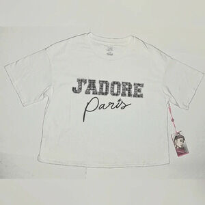 Paris Hilton J'adore Paris Embroidered Tweed Graphic Cropped Tee NWT