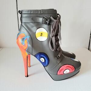 Paris Hilton Trinity Custom Art Leather Stiletto Heel Ankle Boots 11
