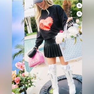 Exterior details: Back pocket; allover logo print; silver-tone logo; removable sparkly heart charm