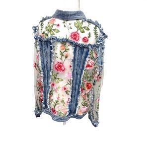 Paris Hues Denim & Lace Embroidered Floral Jacket Size Medium