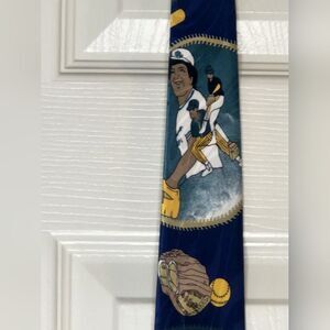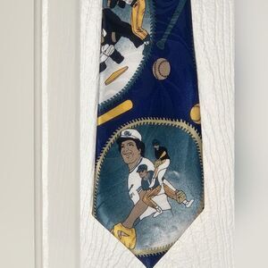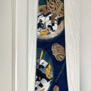 Paris Moderns Paris Design Baseball Print Navy Blue Mlticlrd 100% SILK Neck Tie
