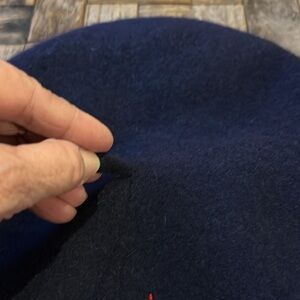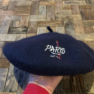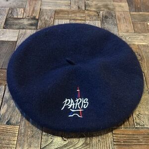 Paris Navy Wool Beret. 95% wool, 5% polyester. 10” across