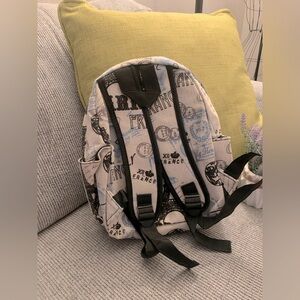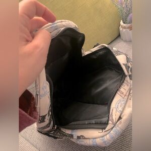 Stylish kids backpack featuring a Paris print in gray. Perfect for school or travel.