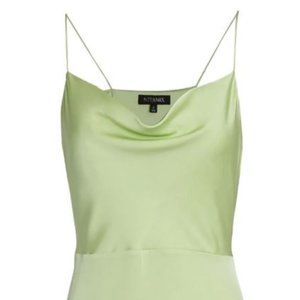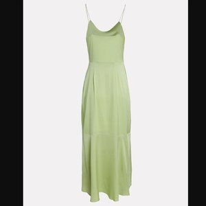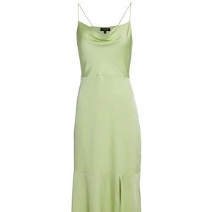 Updated in pistachio green, INTERMIX exclusive Paris silk charmeuse slip dress features a decolletage-flattering cowl neck and flounce hem. Fixed straps. Concealed side zip closure. Front slit. Fabric: 100% silk Dry clean only Imported