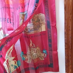 Bought this beautiful silk wraps in Paris on vacation along with the Valentino sandals that was sold recently, buyer was incredibly happy. New but no tag. Large size 36x36, great to cover up for evening outing. Very pretty colors magenta, red, blue and beautiful Paris sceneries on it. Ready to wear. Thanks.