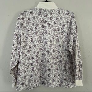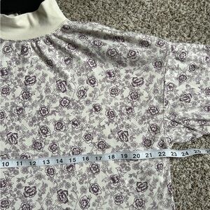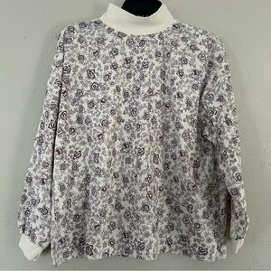 Paris Sport Club Vintage Cream Purple Floral Mockneck Long Sleeve Blouse Large