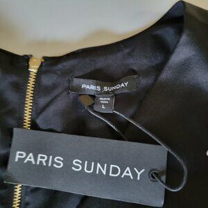 Paris Sunday Sleeveless Satin Dress Black Fit & Flare Size Large NWT