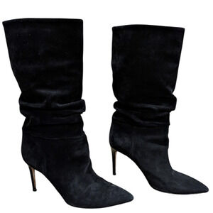 Paris Texas suede boots, black stiletto boots, knee-high heels, slouchy suede boots, luxury boots, Paris Texas size 37, made in Italy boots, pointed toe heels