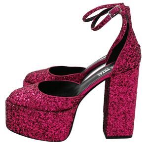 Paris Texas Dalilah Magenta Glitter High Heel Platform Pumps Size 37.5