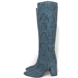 PARIS TEXAS KNEE-HIGH BOOTS TEAL SNAKESKIN-EMBOSSED LEATHER SIZE 37